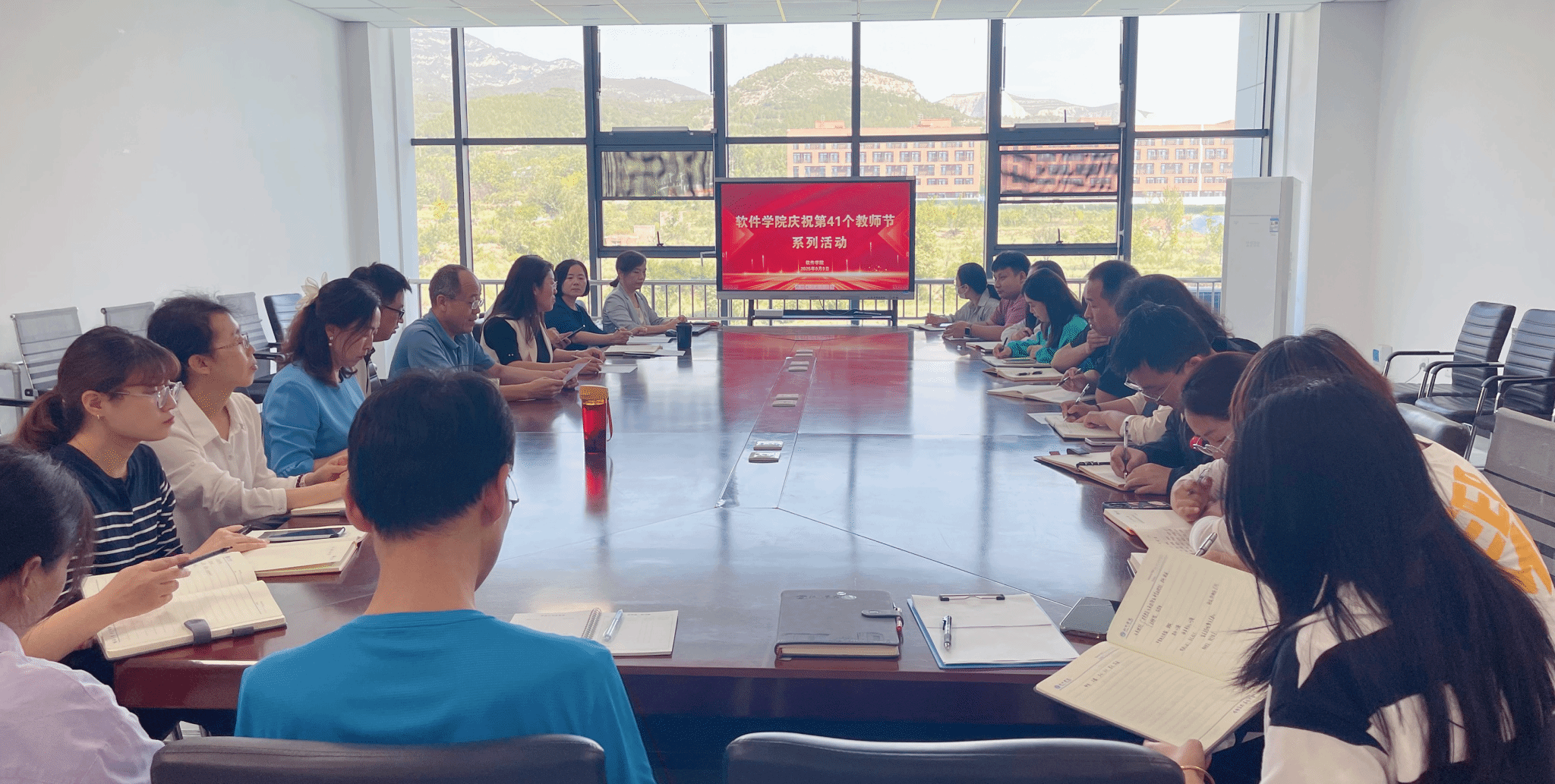 在336会议室举行庆祝第41个教师节系列活动。学院党委书记常旭青主持会议,院领导、各系主任、近三年新入职的教师参加。